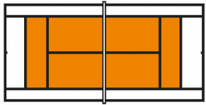 In Rood spelen de kinderen met een zachte rode bal op een minibaan (6x12 meter). Het racket is tussen de 43 en 56 cm.